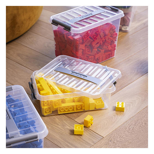 La boîte de rangement transparente Sunware Q-line est faite de plastique transparent, pour pouvoir bien voir le contenu de la boîte. La boîte de rangement est facile à empiler et possède des clips de verrouillage robustes qui maintiennent le couvercle en place. Cette boîte de rangement a une capacité de 6 litres. Elle est utile pour stocker toutes sortes d'articles, tels que des fournitures d'artisanat ou des magazines.